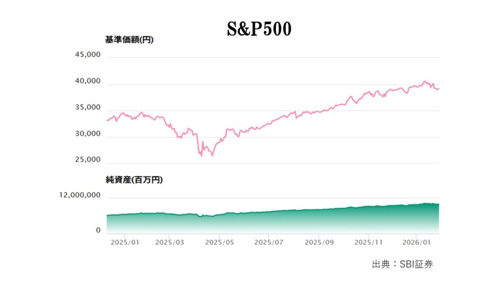 eMAXIS Slim 米国株式(S&P500)は、年初の基準価格33,928円、年末の基準価格39,535円。
