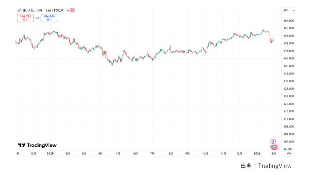2025年年初と年末のドル円の為替について見ていきたいと思います。